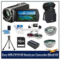 Product Description: The HDR-CX110 is an entry level HD flash memory camcorder that captures 1920 x 1080 video and 3MP digital stills. Choose to record to optional Memory Stick media or to SD/SDHC memory cards. Either way you'll have the ease of flash memory for recording storage and transfer of all your video and still images. Product Details: 1920x1080 high definition video recording:1920 x1080 high definition resolution lets you record your memories in exceptional Sony Full High Definition quality. 3 megapixel still image capture:3 megapixel still image capture lets you take high resolution digital photos. 1/4 back-illuminated Exmor R CMOS sensor:A 1/4 Exmor R CMOS image sensor delivers bright vivid spectacularly detailed video footage as well as 3 megapixel still images. In addition Exmor R technology captures images with high resolution and high sensitivity while the advanced Sony BIONZ image processor improves camera response time and screens out noise to help ensure that the signal from each pixel is as pure as possible. Back-illuminated Exmor R CMOS sensor:Experience stunning low-light sensitivity with improved image clarity and drastically reduced grain with the back-illuminated Exmor R sensor. Designed for compact cameras and camcorders the Exmor R sensor relocates the photo diodes above the support circuitry maximizing the light gathering area per pixel so you can shoot with better results in lower lighting conditions. Approx. 2x increase in sensitivity compared to Sony's existing front-illuminated CMOS sensors at F2.0. 2x faster Quick AF:With the new and improved autofocus (AF) system Quick AF the focusing speed is twice as fast compared to previous models. Whether in bright daylight or in dimly lit environment Quick AF ensures fast accurate and consistent focus lock enabling users to shoot in a wide range of scenes without missing any important moment. Especially when shooting night scenes where convent...[]